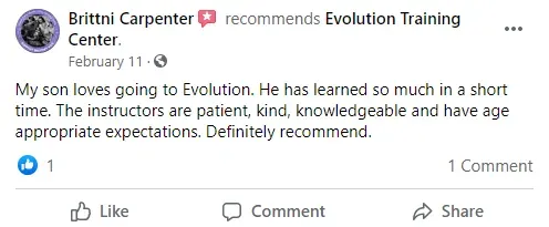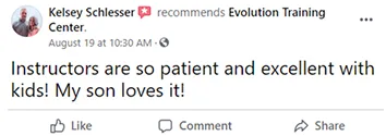 We don’t require parents to stay during classes. However, we do find that parents who get involved with their kids martial arts lessons, truly build a solid connection as they see their child grow in confidence and skill as they progress through their belt ranks. And building strong family units is important to us at Evolution Training Center for our Manhattan community.